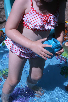 I love love love her bathing suit. Guess it's time for us to buy a little pool :)
